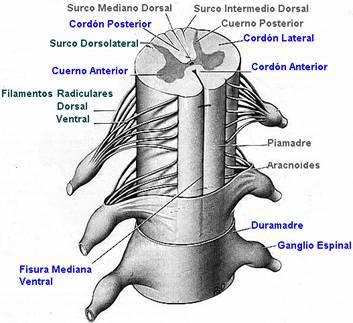 Esta asta sólo se encuentra presente entre los segmentos T1 a L2 o L3, sus somas