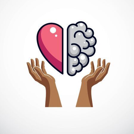 129393650 Concepto De Corazón Y Cerebro Conflicto Entre Emociones Y Pensamiento Racional Trabajo En Equipo Y E (image/jpeg)