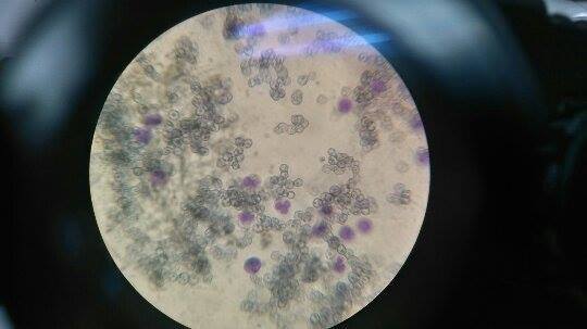 para poder visualizar los globulos blancos tomamos una muestra la llevamos a una lamina le colocamos un cubre objetos esperamos 3 minutos para que se seque y hay le aplicamos colorante Wright.