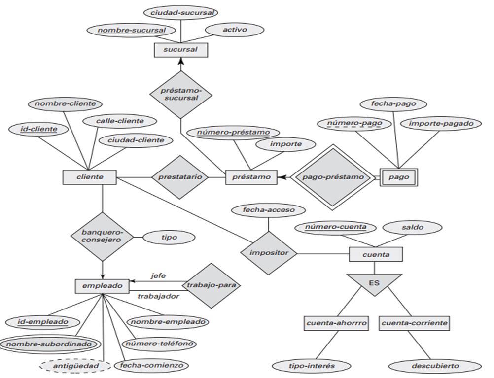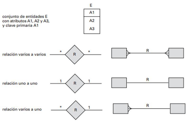 Líneas dobles, indican participación de entidad en conjunto de relaciones.
