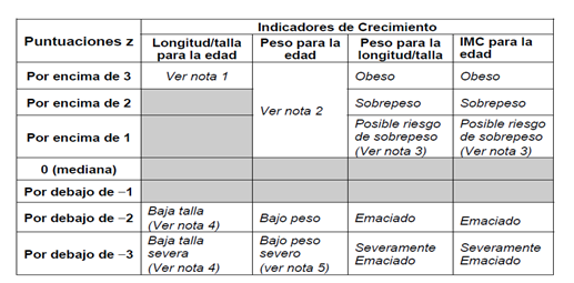 Indicadores para utilizar en la evaluación antropométrica de los niños, niñas
