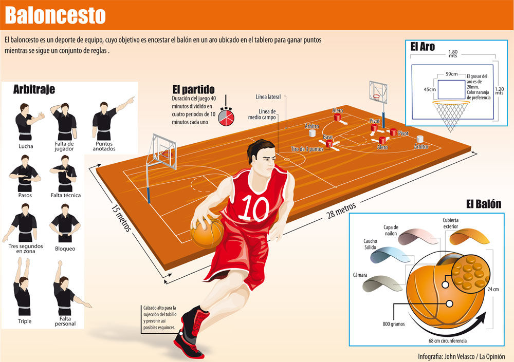Es un deporte de equipo que se puede desarrollar tanto en pista cubierta como en descubierta, en el que dos conjuntos de cinco jugadores cada uno, intentan anotar puntos, también llamados canastas o dobles y/o triples introduciendo un balón en un aro colocado a 3,05 metros del suelo del que cuelga una red, lo que le da un aspecto de cesta o canasta.