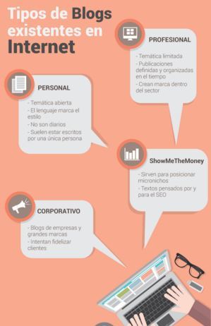 El blog puede ser personal, temático o empresarial, fotoblog, audioblog, y lo