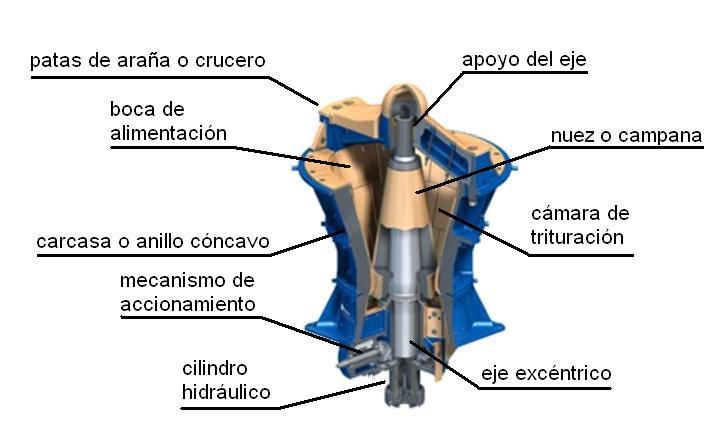 trituración de minerales duros en trozos de gran tamaño. Se