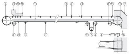 velocidad de la cinta, la inclinación del transporte y las