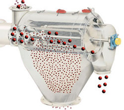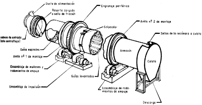 El tamiz consiste en un cilindro horizontal de tela metálica o de material plástico. Palas helicoidales