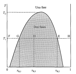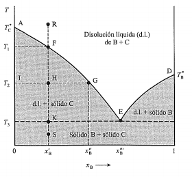 Diagrama de fases sólido- líquido con miscibilidad total en fase líquida e inmiscibilidad en fase sólida