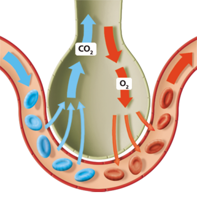 And the same time carbon dioxide leaves the blood and enters the alveoli