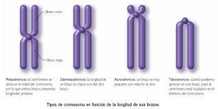 cromosomas esta metacentro donde su centromero esta en el centro y sus brazos son iguales , submetacentrico esta