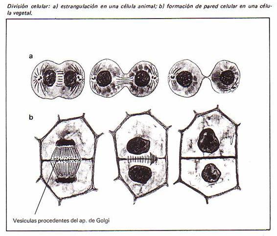 al dividirse la celula por completo ya en su fase final el proceso de divivison la celula animal se divide por estrangulamiento y la