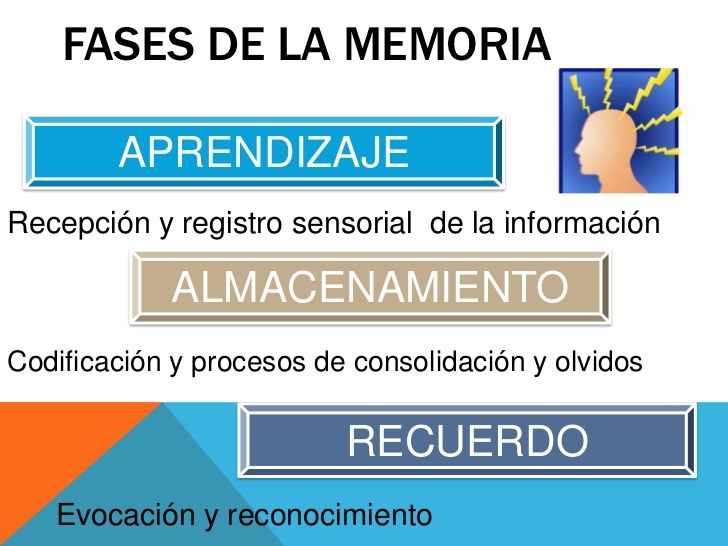 MEMORIA : Conjunto de información disponible para que los organismos realicen sus conductas . fases de registro, alamcenamiento y recuperación