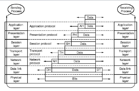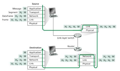 capa enlace de datos. Cada capa agrega su propio encabezdo