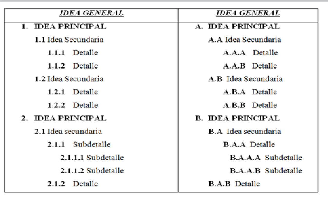 mismo. • Estructura Los puntos principales del esquema deben coincidir con las ideas claves que