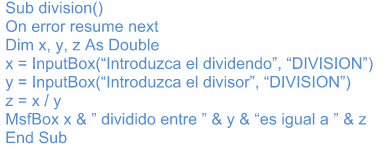 Si VBA encuentra un error y no hemos insertado un código de comprobación de error, el programa