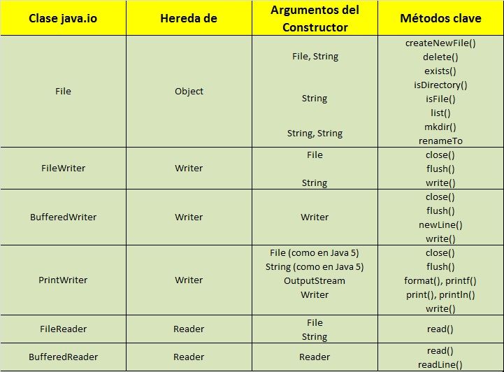 Tabla de los I/O de archivos en Java