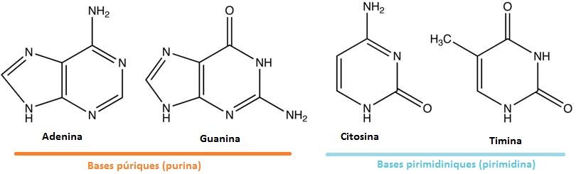 Bases nitrogenades : Adenina, Guanina, Timina, Citosina