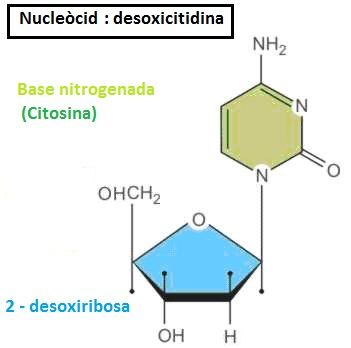 Nucleòcid: Desoxi + base n. -osina(b. púrica) / -idina (b. pirimidinica)