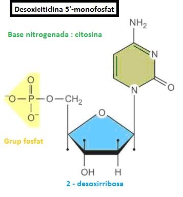 Nucleòtid : Desoxi + base n. -osina(b. púrica) / -idina (b. pirimidinica) + 5-monofosfat