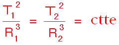3ª:Los cuadrados de los tiempos de revolución son proporcionales a los cubos de los semiejes mayores de las órbitas