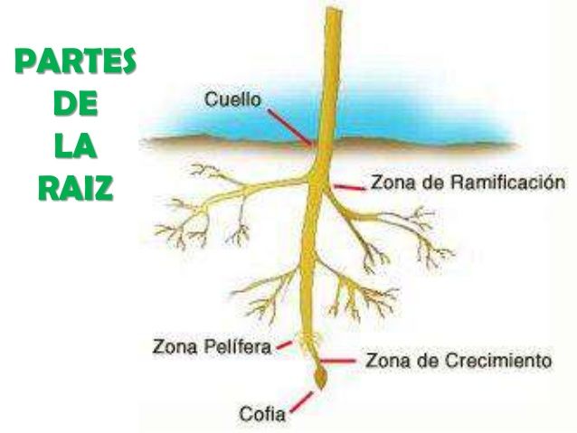 La raíz es la primera de las partes embrionarias que se desarrolla durante la germinación de la semilla; se distingue primero con una porción poco diferenciada la radicula, con una cubierta en su punta lacoleorhiza, que al desarrollarse constituye la raíz primaria con su tejido de protección en la punta denominada cofia o caliptra
