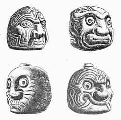 Monolitos escultóricos que representan cabezas de seres míticos