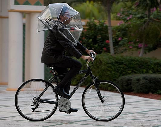 Pero es que el propio concepto de utilizar el paraguas para resguardarse de la lluvia