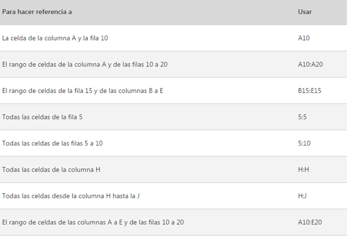 Elementos: referencias, rangos, operadores y signos de agrupamiento