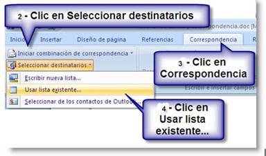 3.INGRESAMOS EN EL DOCUMENTO PRINCIPAL NOS VAMOS A CORRESPONDENCIA Y ELEGIMOS LA OPCION ELEGIR DESTINARIOS