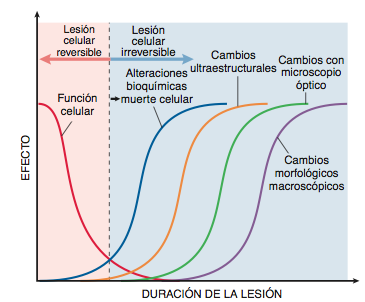 Irreversible (muerte celular, la célula no se recupera y muere)
