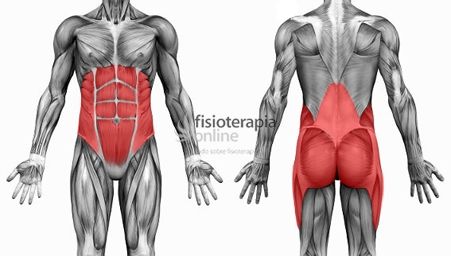abdominales al frente, paraespinales y glúteos en la parte