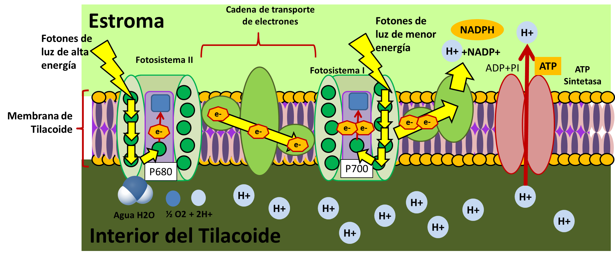 Proceso de fotosisntesis en la membrana del tilacoide