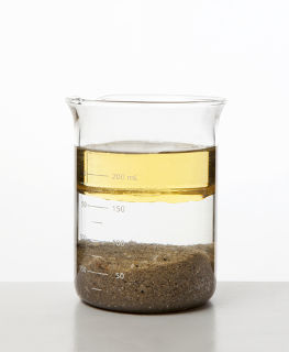 nesse recipiente será possível visualizar a areia e óleo, porém o sal foi diluído