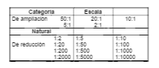 ampliación: escala en la cual la relación es mayor que 1:1. Se representa por X:1 Escala de reducción: escala