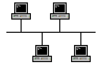 BUS: Todos los nodos (computadoras) están conectados a un circuito común. Si el canal falla, falla toda la red.