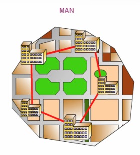 Usa trayectorias en forma de una malla, lo cual evita embotellamientos