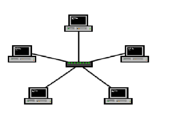 facil de controlar, flujo en el nodo central, el nodo central encamina el trafico