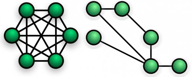 Como están unidos, si falla un canal entre dos nodos, falla toda la red
