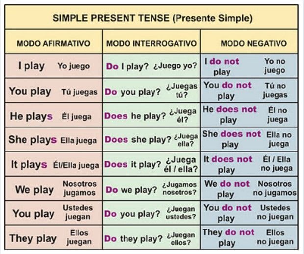 Is one of the verb forms associated with the present tense. In this form the auxiliar verbs changed (Do-Does) in affirmative sentences and (Don't-Doesn't) in negative sentences. In interrogative
