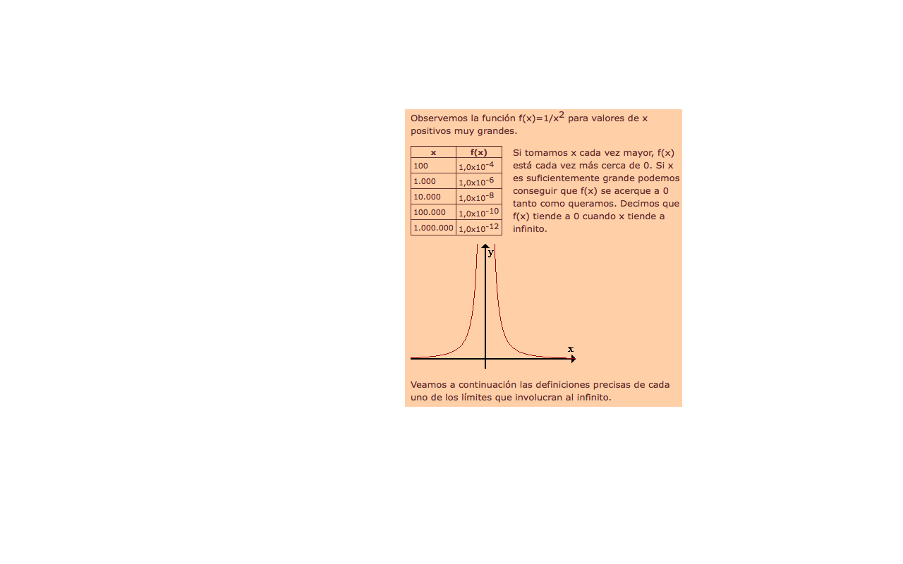 Resulta de calcular limites cuyos valores crecen progresivamente o que disminuyen progresivamente sin tener un valor como limite