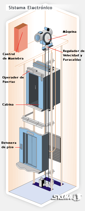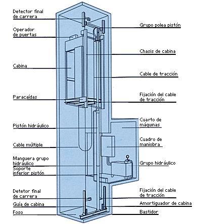 Consta de una cabina, que se desliza por unos rieles , colgada la