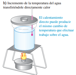 termómetro en él; al interactuar los dos, el termómetro se calienta y