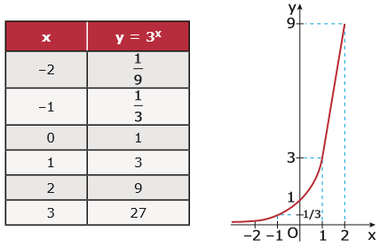 A curva está toda acima do eixo das abscissas, pois y = a^x é sempre maior que zero para todo x real. Portanto, a sua imagem Im é dada por Im = R* +.