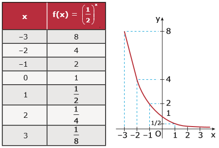 O domínio de uma função exponencial é sempre igual ao conjunto dos números reais (D = R).