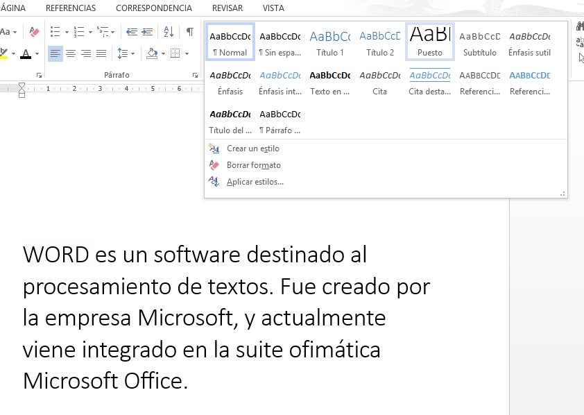 Se deplegará el menú de estilos. Selecciona el estilo que quieres usar y el texto que hayas seleccionado cambiará.