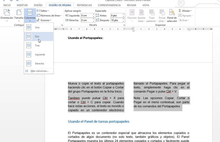 Verás que el texto seleccionado aparecerá organizado en el número de columnas que seleccionaste.