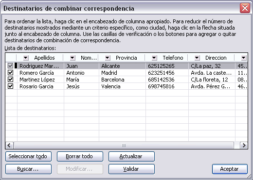 Elegir en Word los destinatarios.