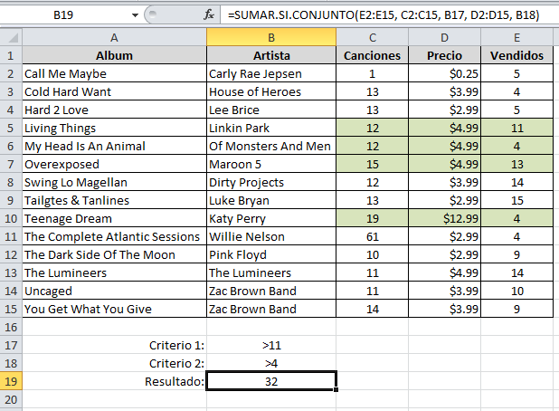 SUMAR.SI.CONJUNTO permite hasta 127 criterios.