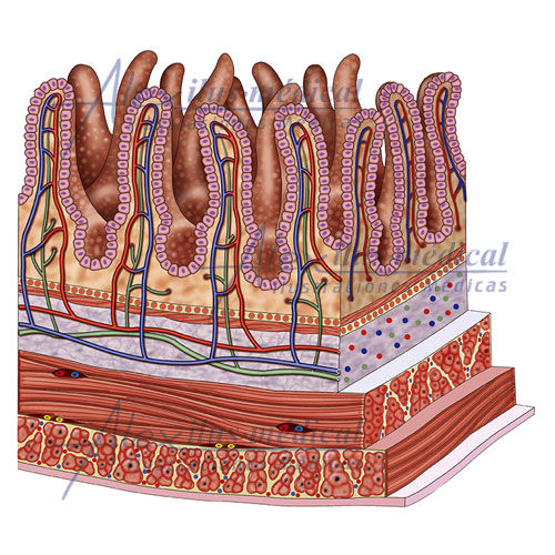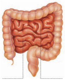 "Situado entre el esfinter pilorico del estomago y la abertura de la válvula ileosecal entre IG"