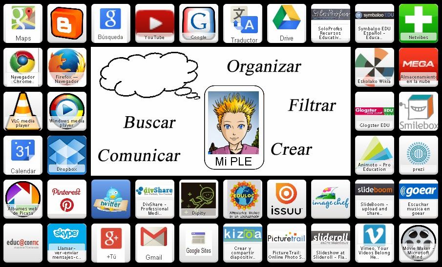 "Un PLE es el conjunto de herraminetas, fuentes de información, conexiones y actividades que cada persona utiliuza de forma asidua para aprender"