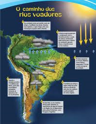 Eles se precipitam parcialmente nas encostas leste da cadeia de montanhas, formando as cabeceiras dos rios amazônicos. Porém, barrados pelo paredão de 4.000 metros de altura, os rios voadores, ainda transportando vapor d’água, fazem a curva e partem em direção ao sul, rumo às regiões do Centro-Oeste, Sudeste e Sul do Brasil e aos países vizinhos.